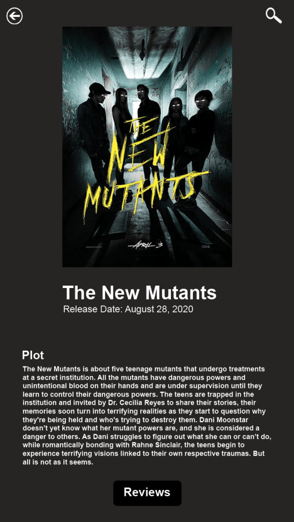 I have designed a movie app for my blog that will allow you to search any movie. Users will be able to watch trailers to movies and read the plots of movies they are interested in. Users will also be able to read reviews about the movies that other users have posted, as well as read the review I have made for my blog.